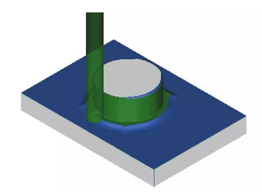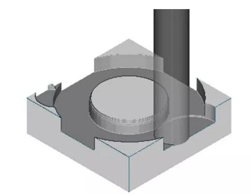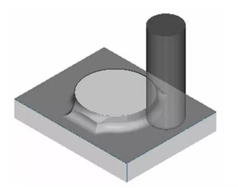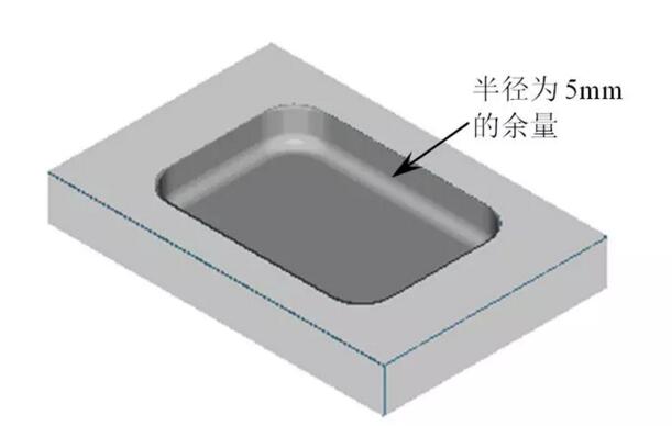當(dāng)使用D30R5的飛刀對(duì)下圖所示的模型進(jìn)行開(kāi)粗時(shí),其底部會(huì)留下圓角半徑為5mm的余量。