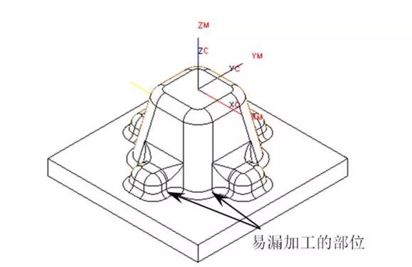 漏加工是比較普遍也是最容易忽略的問(wèn)題之一,編程者必須小心謹(jǐn)慎,不要等到模具已經(jīng)從機(jī)床上拆下來(lái)了才發(fā)現(xiàn)漏加工,那將會(huì)浪費(fèi)大量的時(shí)間。