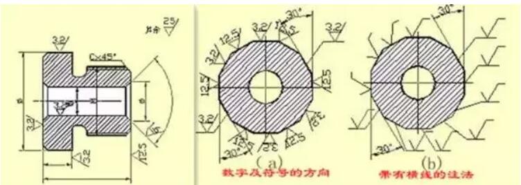 2)表面粗糙度代號中數字及符號的方向必須按規定標注。