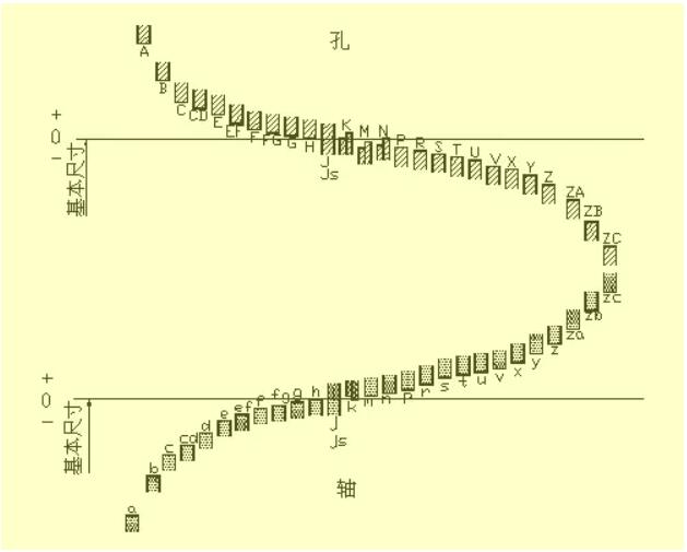 從基本偏差系列圖中可以看出:孔的基本偏差A~H和軸的基本偏差k~zc為下偏差; ,孔的基本偏差K~ZC和軸的基本偏差a~h為上偏差,JS和js的公差帶對稱分布于零線兩邊、孔和軸的上、下偏差分別都是+IT/2、-IT/2。基本偏差系列圖只表示公差帶的位置,不表示公差的大小,因此,公差帶一端是開口,開口的另一端由標準公差限定。