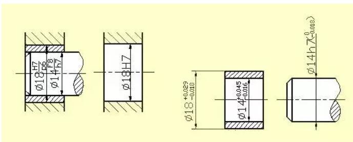 配合代號由孔和軸的公差帶代號組成,寫成分數形式,分子為孔的公差帶代號,分母為軸的公差帶代號。凡是分子中含H的為基孔制配合,凡是分母中含h的為基軸制配合。