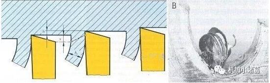 二是退刀時(shí)。螺旋槽絲錐退刀時(shí)清根效果不好,造成切屑阻塞、崩刃甚至是折斷絲錐,這種情況多發(fā)生在切削倒錐部分(一般2-3個(gè)螺距范圍內(nèi))。