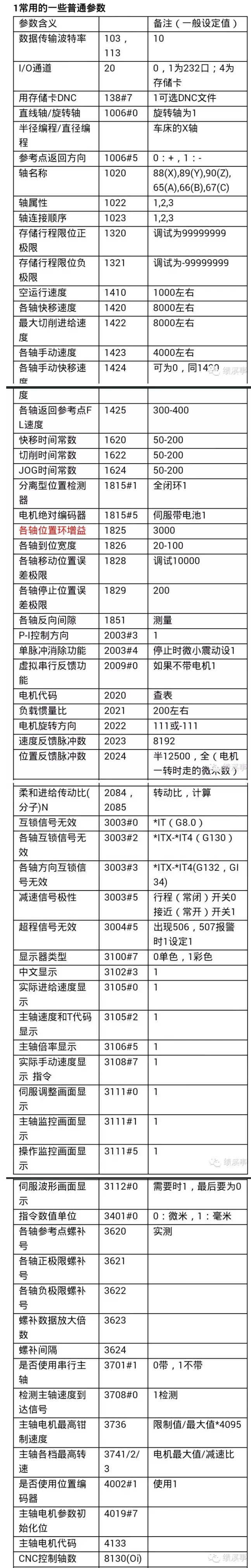 4.3,全閉環(huán)改半閉環(huán):1815#1,把該參數(shù)設(shè)置成0,機(jī)床為半閉環(huán)。然后修改參數(shù)2084和2085,根據(jù)絲杠的螺距重新設(shè)定。