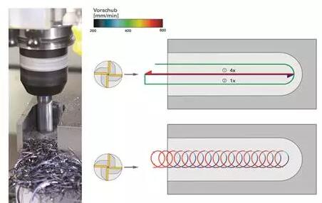 圖1:G01方式進刀和擺線方式進刀的圖示,圖片來源《CNC Handbuch2015/2016》