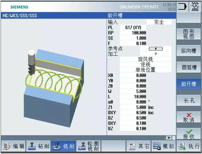 客戶在實際應用中,除了使用編輯宏程序的方法實現上述加工工藝外,還可以通過在828D或840D sl中調用“敞開槽加工循環”這一標配功能,客戶只需要按照圖紙和工藝要求填入相關參數即可,節省參數編程的工作量。
