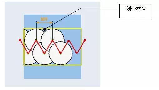 插銑法應(yīng)用于粗加工,在完成相應(yīng)的工序后在工件的邊沿會(huì)留下剩余材料(如圖2所示),