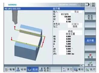 需要在后續(xù)的加工工步中去除。用戶(hù)如果使用西門(mén)子的828D/840Dsl數(shù)控系統(tǒng),可以調(diào)用Cycle889循環(huán)完成插銑加工策略的調(diào)用后,再更換合適的刀具(例如:精銑刀),再次調(diào)用Cycle889循環(huán),選擇合適的半精加工,精加工策略,即可對(duì)槽的側(cè)邊,底部,槽邊倒角進(jìn)行精細(xì)加工。